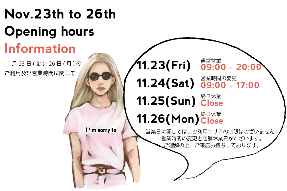 <11月23-26日の営業に関するご案内>